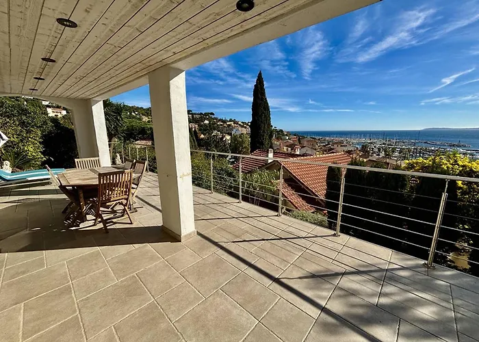 Die 1-Zimmer- Superbe Villa Vue Mer, Climatisee, Proche Plage, Parking, Animaux Acceptes - Fr-1-816-23 Le Lavandou bietet die Nähe zu Sehenswürdigkeiten wie dem Le Lavandou (ist ungefähr 6 Fußminuten von der Unterkunft entfernt). Diese Villa liegt in circa 4 km Entfernung vom Strand du Layet und verfügt über eine Terrasse mit Blick aufs Meer.